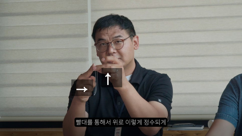빨대를 통해서 위로 이렇게 정수되게